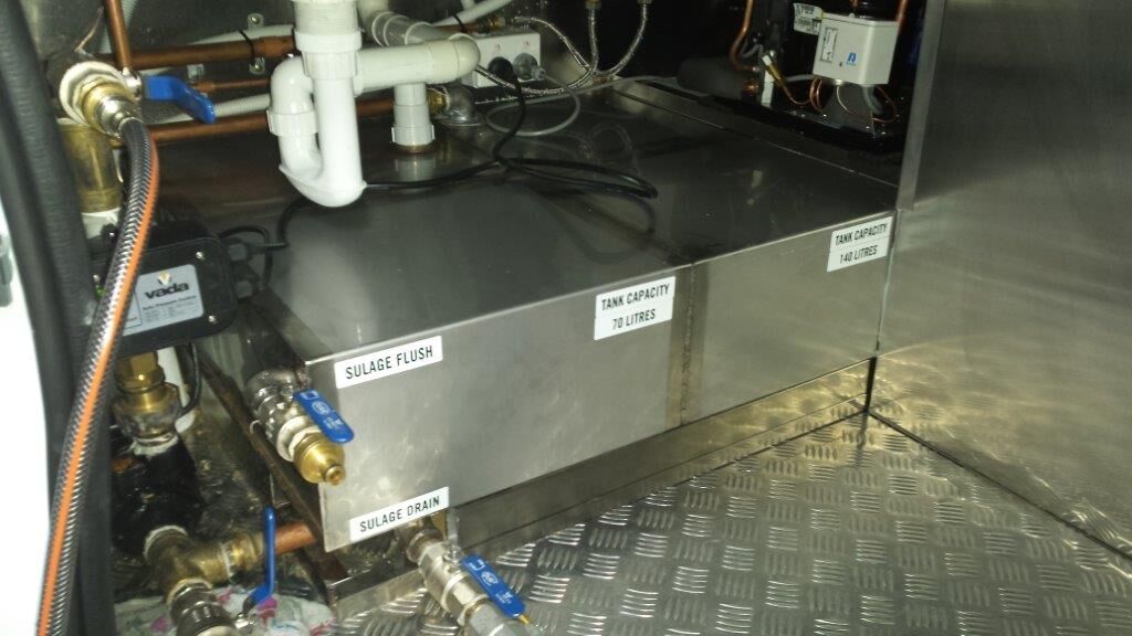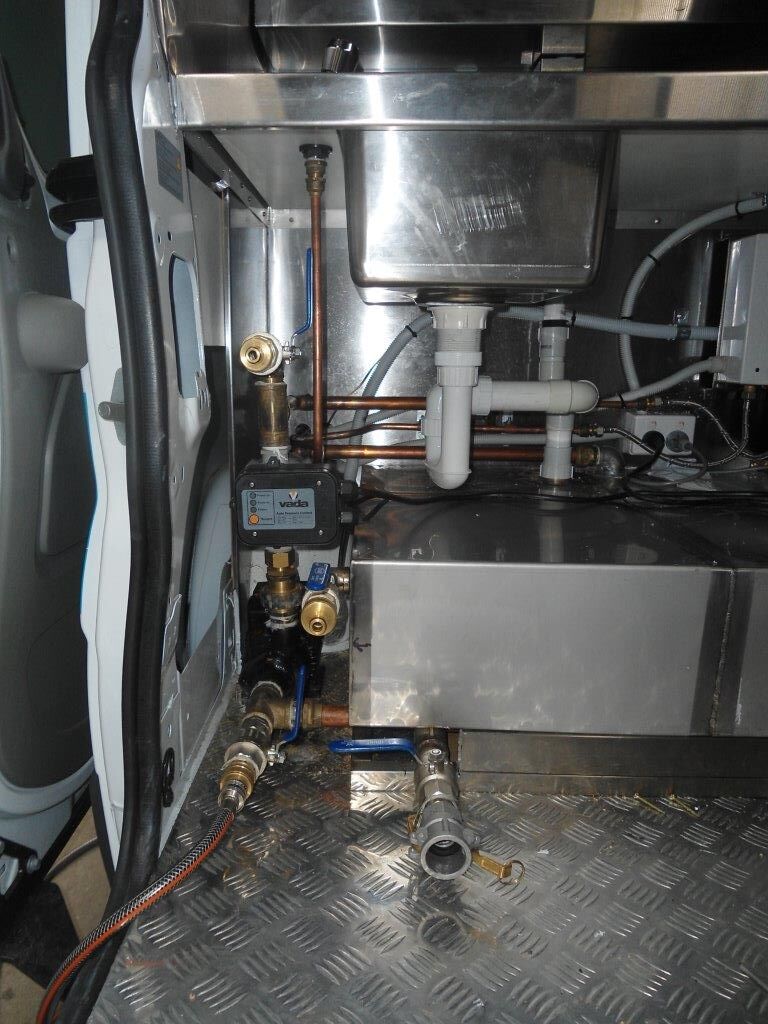 Custom fit out and build of mobile coffee van with drinking water, sullage, hot water and pressure pump.