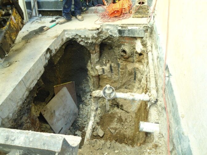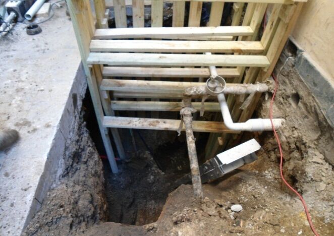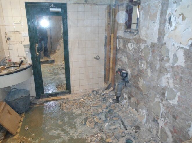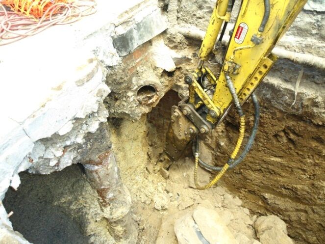 Complete sewer replacement to female toilet; including new boundary trap to a depth of five [5] metres.
