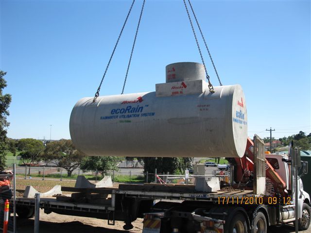 Installation of two [2] 10,000 litres concrete water tanks, connected to existing storm water drainage to pump feed three [3] 40,000 litres above ground tanks to be used for the swimming pool.